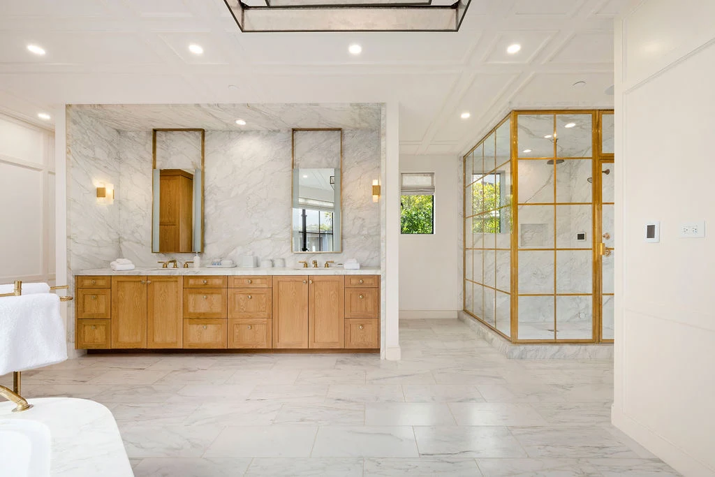 Primary suites and guest baths designed for daily comfort and resale value. Double vanities, improved circulation, walk-in showers, balanced lighting, durable surfaces, moisture control, and smart storage solutions. Design coordination: finishes, fixtures, tile patterns, and hardware selected to align with the home's overall style. Functional upgrades include improved ventilation, sound insulation, water efficiency, and layouts that feel open, practical, and easy to maintain over time.